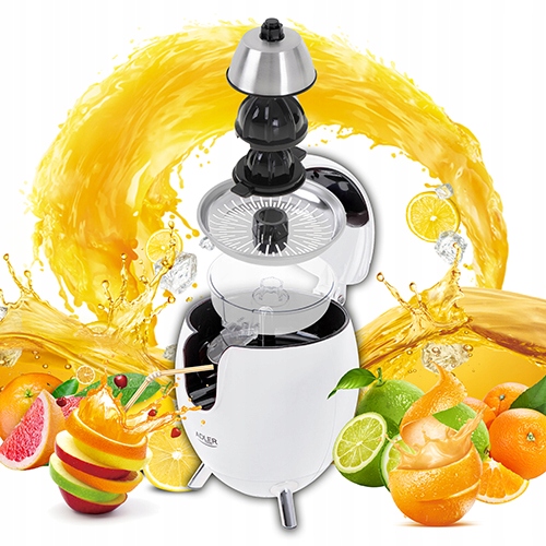 Wyciskarka posiada 2 stożki wyciskające, odpowiednie dla owoców o różnej średnicy. Urządzenie składa się stabilnej podstawy, przykrywki, sitka oddzielającego sok od miąższu oraz dwóch wymiennych stożków wyciskających. Sitko gwarantuje płyn bez pływających w nim cząstek i pestek z owoców. Natomiast stożki ułatwiają wyciskanie soku z mniejszych i większych cytrusów, co ma szczególne znaczenie, jeśli jesteśmy miłośnikami soków grejpfrutowych. Wygoda i prostota użytkowania produktu sprawią, że będzie to idealny zakup dla każdego, kto ceni zdrowe odżywianie i świeże nieprzetworzone soki jako uzupełnienie diety. Elegancki wygląd i możliwość mycia wyjmowanych części w zmywarce czynią ją idealną do każdego rodzaju kuchni. Dzióbek pozwala wyciskać sok bezpośrednio do szklanki z herbatą lub na sok.