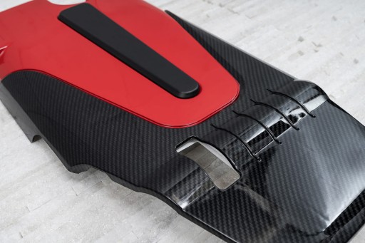 Osłona stylizowana jest na wzór fabrycznej osłony silnika występującej w modelu Type-R. Element wykonany został z wysokiej jakości tworzywa w kolorze czerwnonym z elementami malowanymi w kolorze struktury carbonu. Pod spodem znajduje się profesjonalne wygłuszenie.