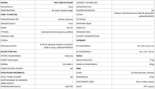 Stół do tenisa stołowego Cornilleau 510 PRO Outdoor