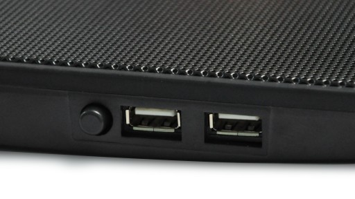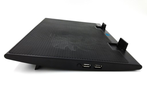 Wentylatory pobierają chłodne powietrze spod podstawki i kieruje je w dolną cześć laptopa, zapewniając przy tym bardzo niską emisję hałasu podczas przepływu powietrza.