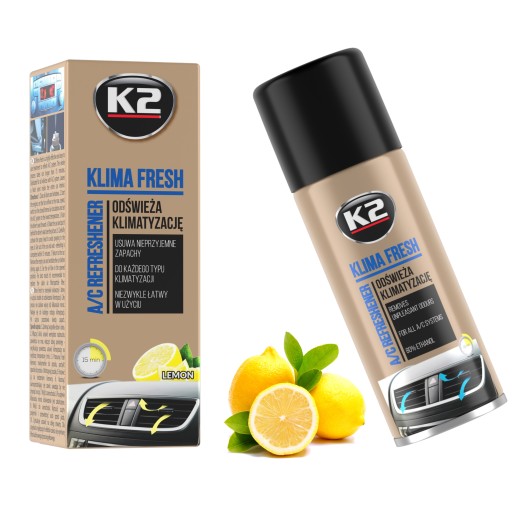 Odświeżacz klimatyzacji K2 KLIMA FRESH to niezwykle skuteczny i łatwy w użyciu środek do odświeżania klimatyzacji. Usuwa nieprzyjemne zapachy, które powstają na skutek zanieczyszczeń i wilgoci w układzie wentylacyjnym. Cały proces nie zabiera więcej niż kilkanaście minut. Nadaje się do każdego typu klimatyzacji. Po użyciu pozostawia świeży zapach.