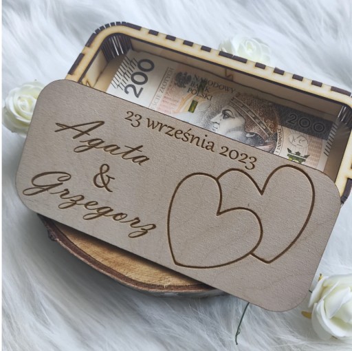 Personalizowane Pudełko na Pieniądze ze Sklejki - Wyjątkowy Prezent na Ślub