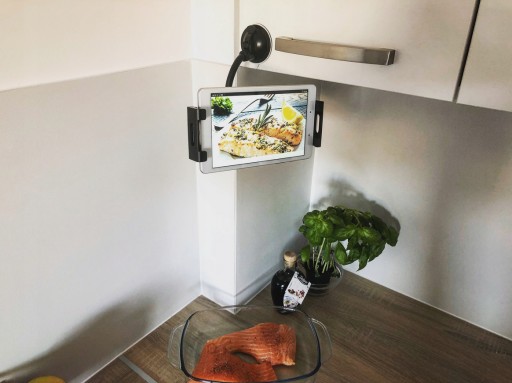 Nasz uchwyt z powodzeniem może być wykorzystany w kuchni jako uchwyt do tabletu, telefonu.