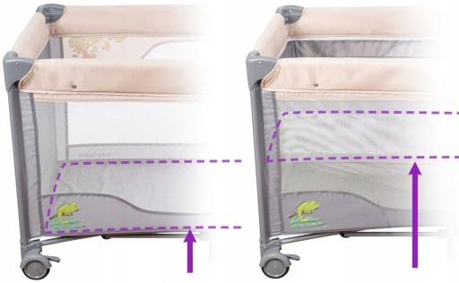 Dwa poziomy materaca: górny dla dzieci 0-6 miesięcy, dolny dla dzieci 6-36 miesięcy.