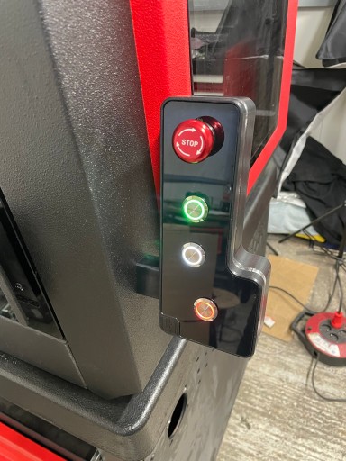 Obudowa w standardzie wyposażona jest w mały panel sterowniczy posiadający 4 przyciski – wyłącznik awaryjny oraz start/pauza/stop do obsługi pracy w trybie automatycznym.