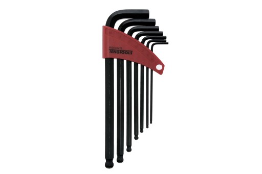 Zestawy zawierające 7 sześciokątnych kluczy trzpieniowych. Ze stali chromowo-wanadowej. Kuliście uformowana końcówka na dłuższym końcu klucza umożliwia pracę przy przechyle. Dostarczane w plastikowej oprawce.