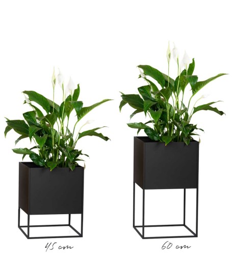 Do malowania używamy najwyższej jakości farby proszkowej: poliestru fasadowego odpornego na ścieranie oraz promienie UV. Czarny, strukturalny kolor pięknie komponuje się z nowoczesnym wnętrzem w stylu loftowym, industrialnym lub skandynawskim nadając mu elegancji i wyjątkowego charakteru. Struktura farby pomaga zachować stojak na donicę w idealnej czystości, ponieważ palce nie zostawiają na niej śladów.
