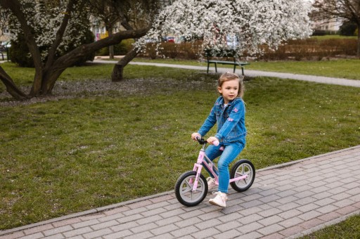 Dziecko, aby swobodnie jeździć na rowerku biegowym, powinno w pozycji siedzącej mieć całe stopy podparte na podłożu i lekko zgięte nogi. Minimalna odległość siodełka od podłoża powinna być mniejsza niż długość nóg małego rowerzysty.