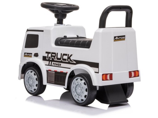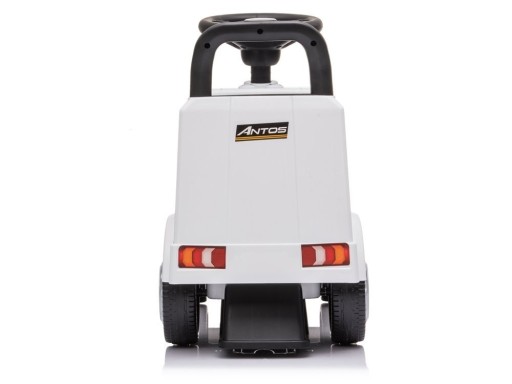 Dziecięcy mini pojazd został zaprojektowany z dbałością o najmniejszy szczegół. Felgi, reflektory oraz grille są bardzo dobrze wykonane, co w znacznym stopniu oddziałuje na pozytywne odczucia młodego kierowcy. Wykonany jest z lekkiej, plastikowej konstrukcji, która jest bardzo wytrzymała i solidna. Jeździk Mercedes Antos posiada skórzane siedzisko, dzięki czemu zapewnia wygodę podczas jazdy. Pod nim znajduje się schowek do przechowywania drobnych przedmiotów, które maluch może zabrać ze sobą na spacer. Oparcie siedzenia chroni dziecko przed wychyleniem do tyłu, a znajdujący się pod zabawką element chroni przed przewróceniem jeździka.