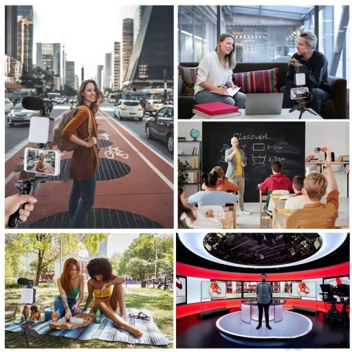 Szerokie zastosowanie: Zestaw jest przeznaczony do nagrywania wideo na smartfonie za pomocą mikrofonu wtykowego TRRS 3,5 mm, uniwersalnego do tworzenia vlogów, wywiadów, transmisji na żywo, makijażu online, czatów wideo i innych.