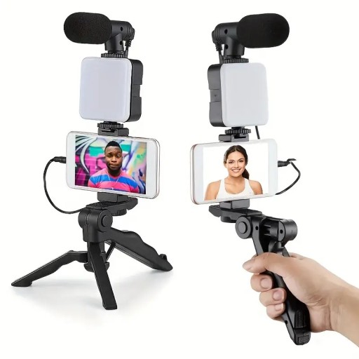 Zestaw do vlogowania live stream ze statywem i mikrofonem