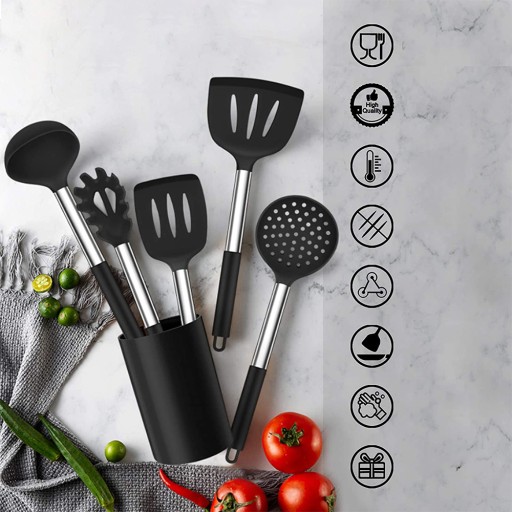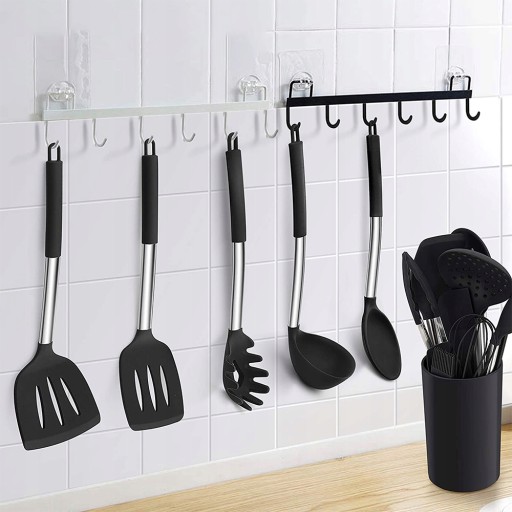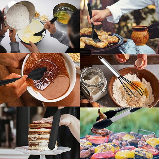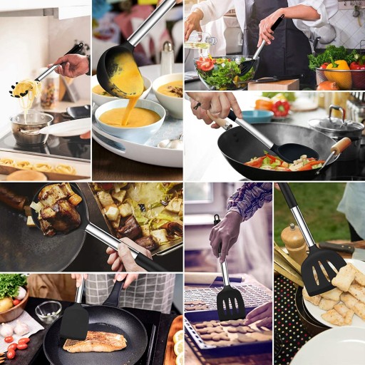 Ten wysokiej jakości silikonowy zestaw przyborów kuchennych jest łatwy do mycia, wystarczy przetrzeć go gorącą wodą lub włożyć do zmywarki.