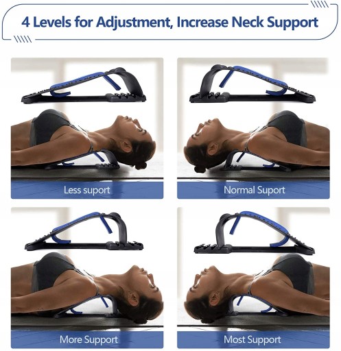 Ergonomiczna konstrukcja relaksująca szyja i ramiona w celu rozciągnięcia i wyrównania kręgosłupa. Kiedy się na niej kładziesz, dopasowuje się do krzywizny kręgosłupa, aby zapewnić prawidłową postawę. 4 regulowane ustawienia do użycia, aby pasowały do wszystkich grup wiekowych i umiejętności. Możesz naprawić tę trakcję szyjną urządzenie na najwygodniejszym poziomie dla łatwego rozciągania i skutecznego uśmierzania bólu.