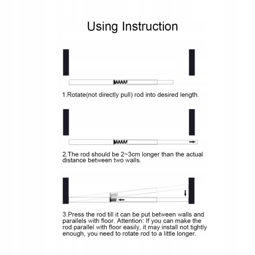 2. Pręt powinien być o 2~3 cm dłuższy niż rzeczywista odległość między dwiema ścianami.