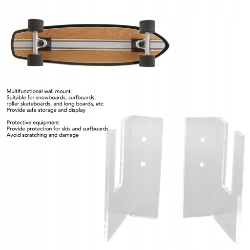 1. Wielofunkcyjny uchwyt ścienny: Czarny akrylowy uchwyt ścienny do deskorolki nadaje się do snowboardu, surfingu, jazdy na rolkach i długich desek, zapewniając bezpieczne przechowywanie i eksponowanie.