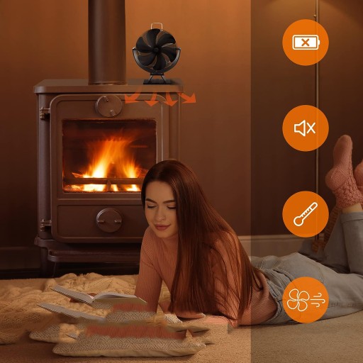 🔥 Przyjazny dla środowiska – wentylator kominkowy działa bez baterii i zasilacza. Wytwarza energię poprzez ciepło emitowane przez kominek.