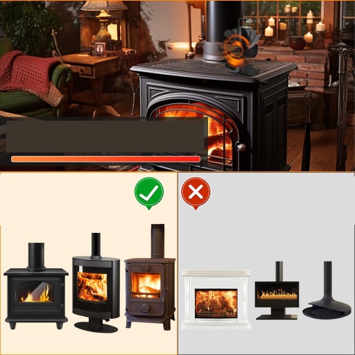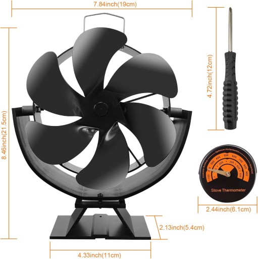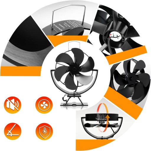 6-Łopatkowy Wentylator Kominkowy, Zasilany Termicznie z Termometrem