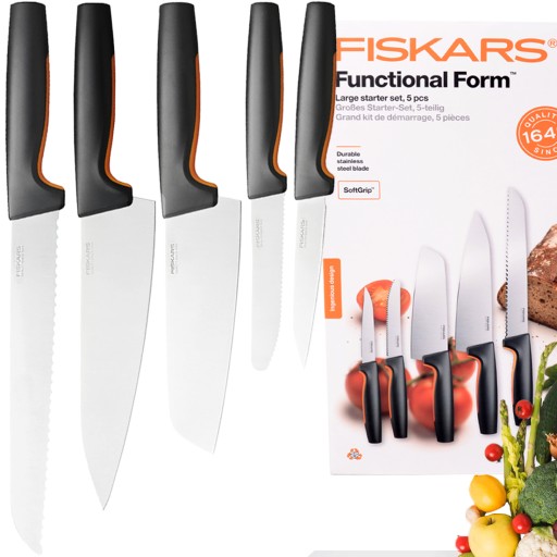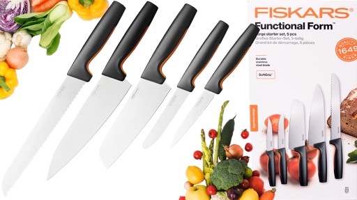 FISKARS KOMPLET ZESTAW 5 NOŻY NOŻE KUCHENNE DO CHLEBA POMIDORÓW OSTRE