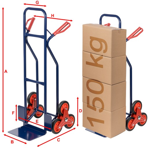 Wydłużona konstrukcja wózka oraz potrójne koła pozwalają na wygodny transport wysokich przedmiotów o wadze do 150 kg po powierzeniach płaskich oraz po schodach. W sytuacji, gdy przewozimy wysokie przedmioty możemy wykorzystać górną rurkę pałąka jako uchwyt transportowy zamiennie z rączkami dzięki czemu daje nam to większą swobodę w transporcie dużych gabarytów o różnej wadze. Jednoczęściowa konstrukcja znacznie lepiej radzi sobie z ciężkimi ładunkami podczas przechyłów charakterystycznych dla transportu po schodach.