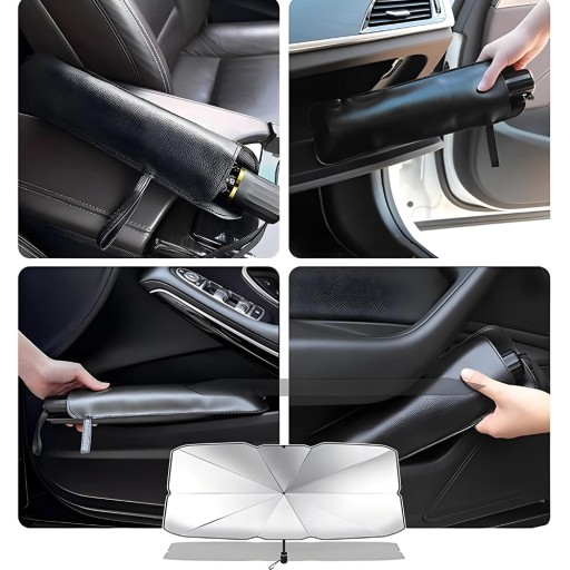 Osłona ma innowacyjny designowi z 10 stalowymi ramionami, które umożliwiają łatwe składanie i rozkładanie jak tradycyjny parasol. Ten inteligentny mechanizm nie tylko blokuje promienie słoneczne, lecz także skutecznie chroni przed nadmiernym nagrzewaniem wnętrza pojazdu, minimalizując wpływ promieni UV na deskę rozdzielczą oraz tapicerkę samochodu.