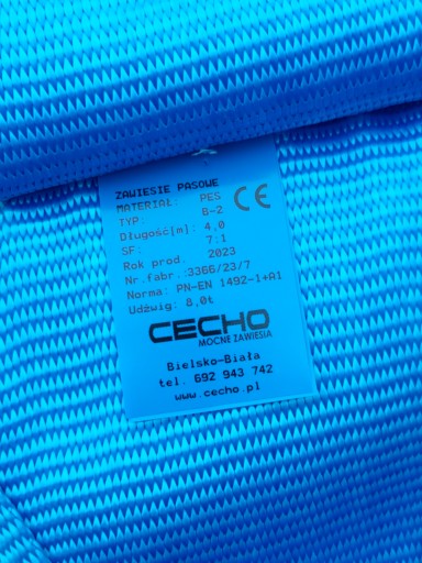 - znakowanie: udźwig, znak CE, nazwa producenta, numer seryjny, długość robocza zawiesia, data produkcji