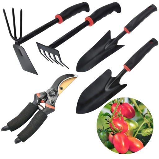 Zestaw 5 w 1 to kompleks narzędzi ogrodniczych, które stanowią nieodzowny sprzymierzeniec każdego pasjonata ogrodnictwa i działkowca. W zestawie dostępne są dwie odmienne łopatki ogrodowe – jedna o węższym profilu, druga zaś posiadająca szersze ostrze. Dodatkowo, zestaw obejmuje motyczkę z pazurkami, grabki ogrodnicze oraz niezawodny sekator. To kompaktowe narzędzia, które pomimo skromnych wymiarów zachowują imponującą funkcjonalność, dorównując pełnowymiarowym odpowiednikom. Ergonomiczne rękojeści wykonane z miękkiego tworzywa sztucznego zapewniają nie tylko solidny chwyt, ale również maksymalny komfort podczas użytkowania. Produkt służy do drobnych prac w ogrodzie w wcześniej przygotowanym gruncie. Do zestawu dołączamy GRATIS, czyli nasiona pomidora ,,Malinowy Kapturek".