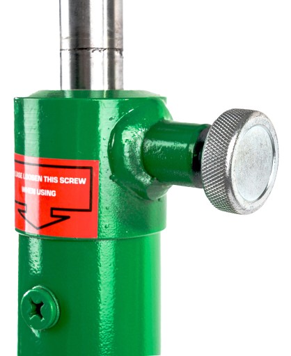 Za opuszczanie ciężaru odpowiada pokrętło umiejscowione w górnej części podnośnika, wystarczy je przekręcić, aby spuścić ciśnienie i obniżyć ciężar