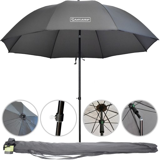 - Parasol jest wykonany z materiału odpornego na wodę, także żaden deszcz nie przeszkodzi w wędkowaniu.