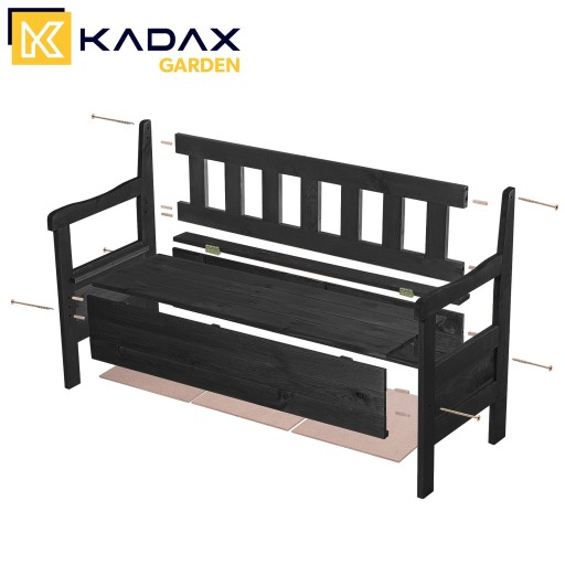 ŁAWKA OGRODOWA DREWNIANA Z OPARCIEM 120cm ZE SKRZYNIĄ TARAS BALKON ANTRACYT