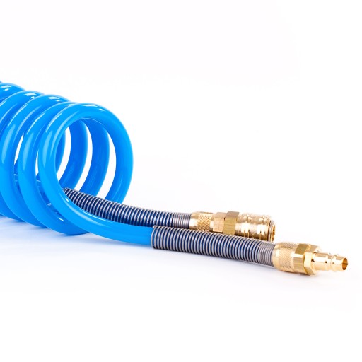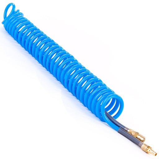 Przewód pneumatyczny spiralny RQS poliuretan 12x8 mm o długości 15 m ze złączami RECTUS wzmocnionymi sprężyną
