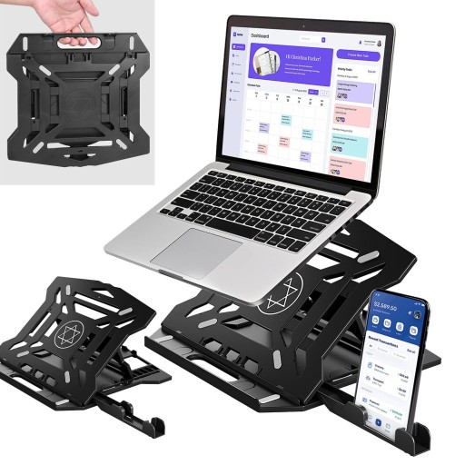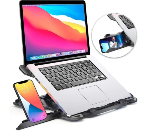 Jeśli jesteś osobą, która dużo pracuje na laptopie, w biurze, w podróży czy też w domu, a jednocześnie cenisz sobie wygodę pracy, przenośna podstawka pod laptop będzie dla Ciebie idealnym gadżetem!Regulowana, poręczna, oraz solidna podstawka pasująca do laptopów od 11 do 16 cali a także do tabletów bądź książek. Podstawka posiada także specjalną, wysuwaną podstawkę na telefon. To niezawodne rozwiązanie, które sprawdzi się zarówno w warunkach domowych, jak i w miejscu pracy.