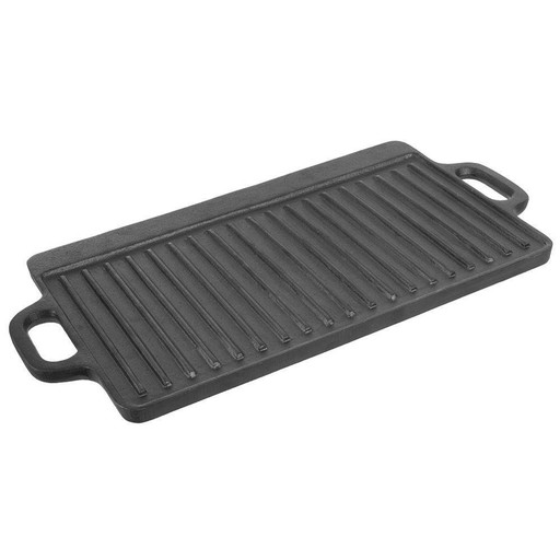 - ŻELIWNA - Płyta żeliwna płyta do grillowania mięs, ryb i warzyw. Patelnia ma wymiary 45,5 x 23 x 1,5 cm. Naczynia wykonane z żeliwa idealnie rozprowadzają ciepło oraz długo utrzymują wysoką temperaturę.