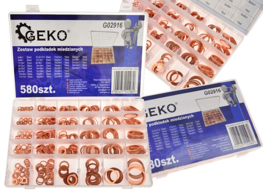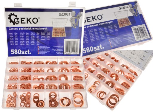GEKO PODKŁADKI MIEDZIANE USZCZELKI MIEDŹ MIEDZIANYCH ZESTAW 580 SZT