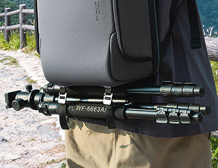 W dolnej części plecaka znajduję się zaczep, dzięki któremu można przymocować statyw.