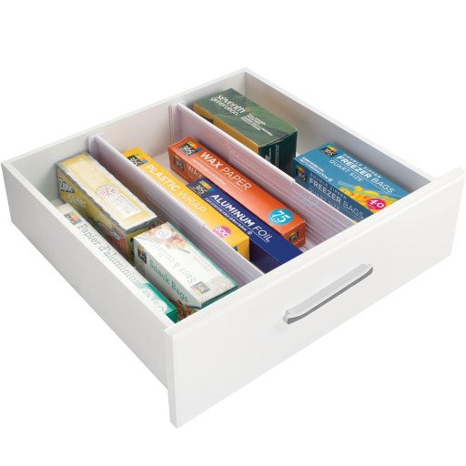 DOSKONAŁE WYMIARY: zmieści się w niemal każdej szufladzie. Za pomocą dwóch przegródek można utworzyć 3 przekładki.