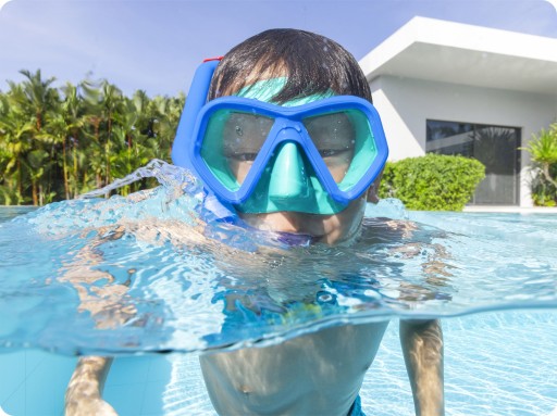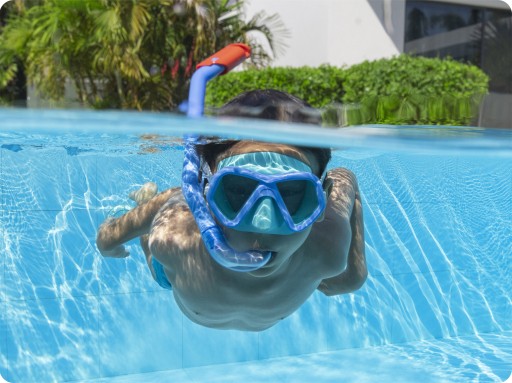 Teraz możesz nurkować i korzystać z zabawy w wodzie do woli! Maska do pływania, która znajduje się w zestawie, posiada soczewki z poliwęglanu.
