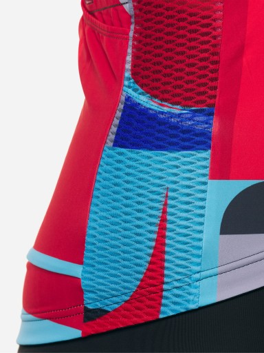 - wykonane z nieco mniej elastycznej lycry, co reszta koszulki - bardziej przylegające i opływowe niż w kroju Long Day in the Saddle,