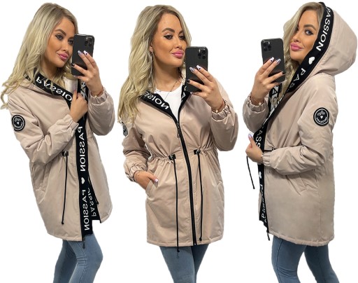 - Najmodniejsze, dzianinowe wykończenie wzdłuż zamka i kaptura.