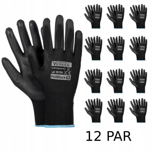 RĘKAWICE ROBOCZE PRECYZYJNE VERKEN POLIBLACK R9 12 PAR
