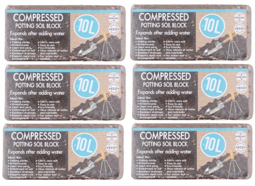 Zestaw 6x PODŁOŻE DLA ROŚLIN ZIEMIA KOKOSOWA Torf Z Włóknem Kokosowym 10L