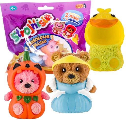 Zabawka jest bardzo elastyczna, co pozwala dziecku na zgniatanie i ściskanie. Strojnisie Modne Misie wyglądają mega słodko, kiedy są przebrane. Zbierz je wszystkie, zamieniaj ubranka i stylizuj do woli. Produkt jest zapakowany .