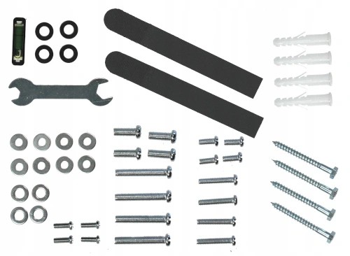 ℹ️Zestaw zawiera wszystkie niezbędne śruby, podkładki dystansowe oraz kołki montażowe, które umożliwiają umocowanie go do ściany.