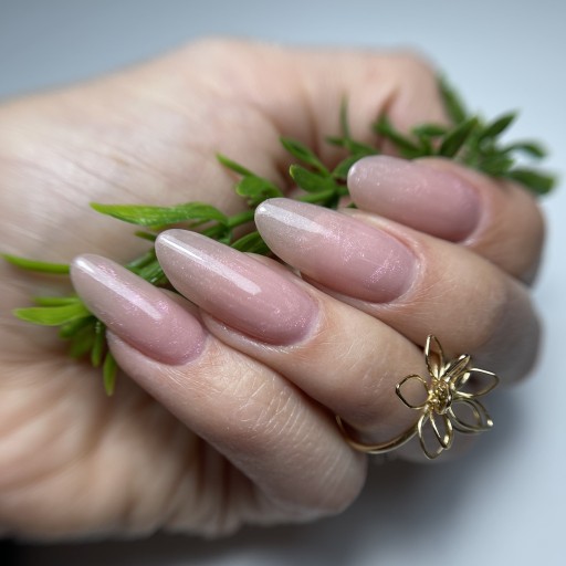 Top ten pozwala uzyskać "efekt mgiełki, z iskrzącymi drobinami" na paznokciach (mocno opalizuje - nie zmienia koloru podkładowego).