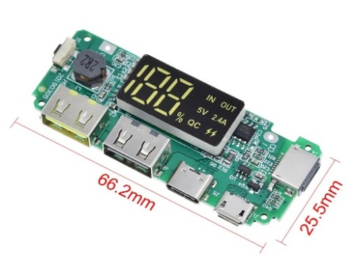 - możliwość zbudowania zasilacza przenośnego (powerbank'a) z wieloma różnymi portami zasilającymi i dwoma wyjściami