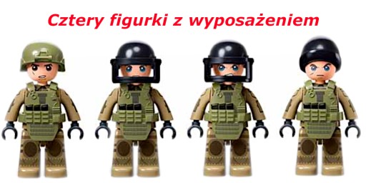 - Cztery figurki żołnierzy z wyposażeniem
