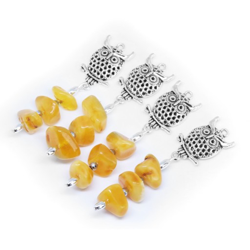 Elegancka zakładka do książki z zawieszką w kształcie sowy z dodatkiem bursztynu oraz srebrnego hematytu.