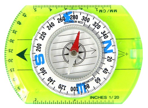 Kompas w formie płytki namapowej. Idealnie nadaje się do startów w imprezach na orientację, dla początkujących. Na płytce umieszczono skale 1:10 000 z formie linijki bocznej ( 1cm linijki to 100 metrów w terenie - patrz na kompas). Posiada również przelicznik na mile. Dzięki przeźroczystości płytki, bez problemu można pracować na mapie jak i wyznaczyć azymut do marszu z punktu A do B. Ruchoma podziałka na tarczy kompasu (od 0 do 360 stopni), pozwala na dokonanie odczytu azymutu, punktów namiarowych czy treści mapy podczas marszu/biegu. Kompas należy trzymać w poziomie tak, aby tarcza mogła się swobodnie obracać (obrócenie lub mocne przechylenie kompasu, powoduje blokadę igły). Czerwona strzałka pokazuje kierunek północy. Dobry i prosty kompas do startów w imprezach na orientację, oraz uprawiania turystyki kwalifikowanej. Igła w kompasie jest zawieszona w roztworze alkoholu, na specjalnym bolcu co umożliwia pracę przy temperaturze ujemnej. Czas stabilizacji igły kompasu około 2-4 sekundy.