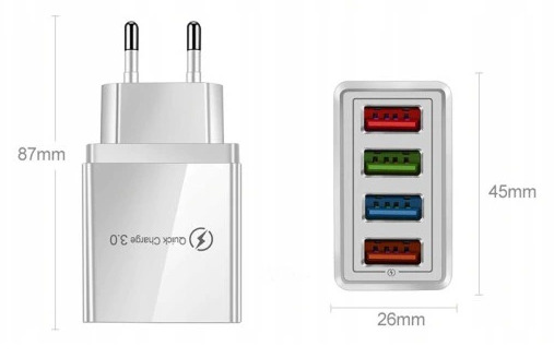 ?ŁADOWARKA SIECIOWA 4x USB 3.0A FUNKCJA QUICK CHARGE