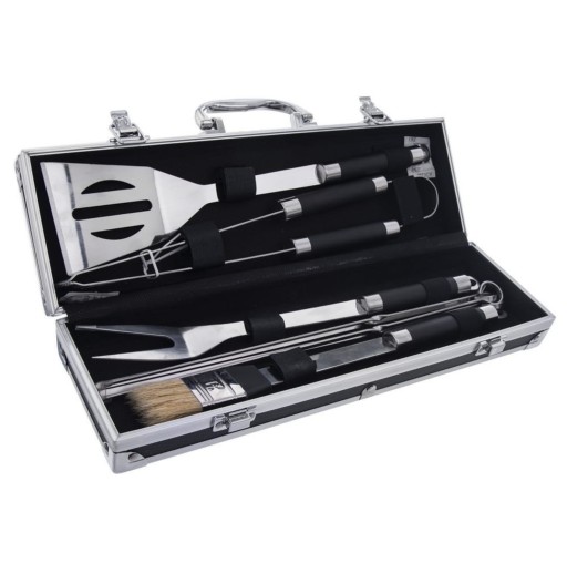 - WYTRZYMAŁE - Przybory do grillowania wykonane z wysokiej jakości stali nierdzewnej w kolorze srebrnym. Nadają się do mycia w zmywarce do naczyń. Zestaw zapakowany w wygodną walizkę z uchwytem i zamkami.