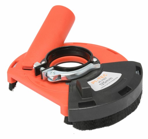 Pasuje do wszystkich małych szlifierek 115 mm - 125 m. Skutecznie odsysa szkodliwy pył, osłona przeciwpyłowa umożliwia odsysanie pyłu podczas szlifowania. Osłonę mocujemy w miejsce standardowej osłony metalowej do kołnierza wrzeciona.